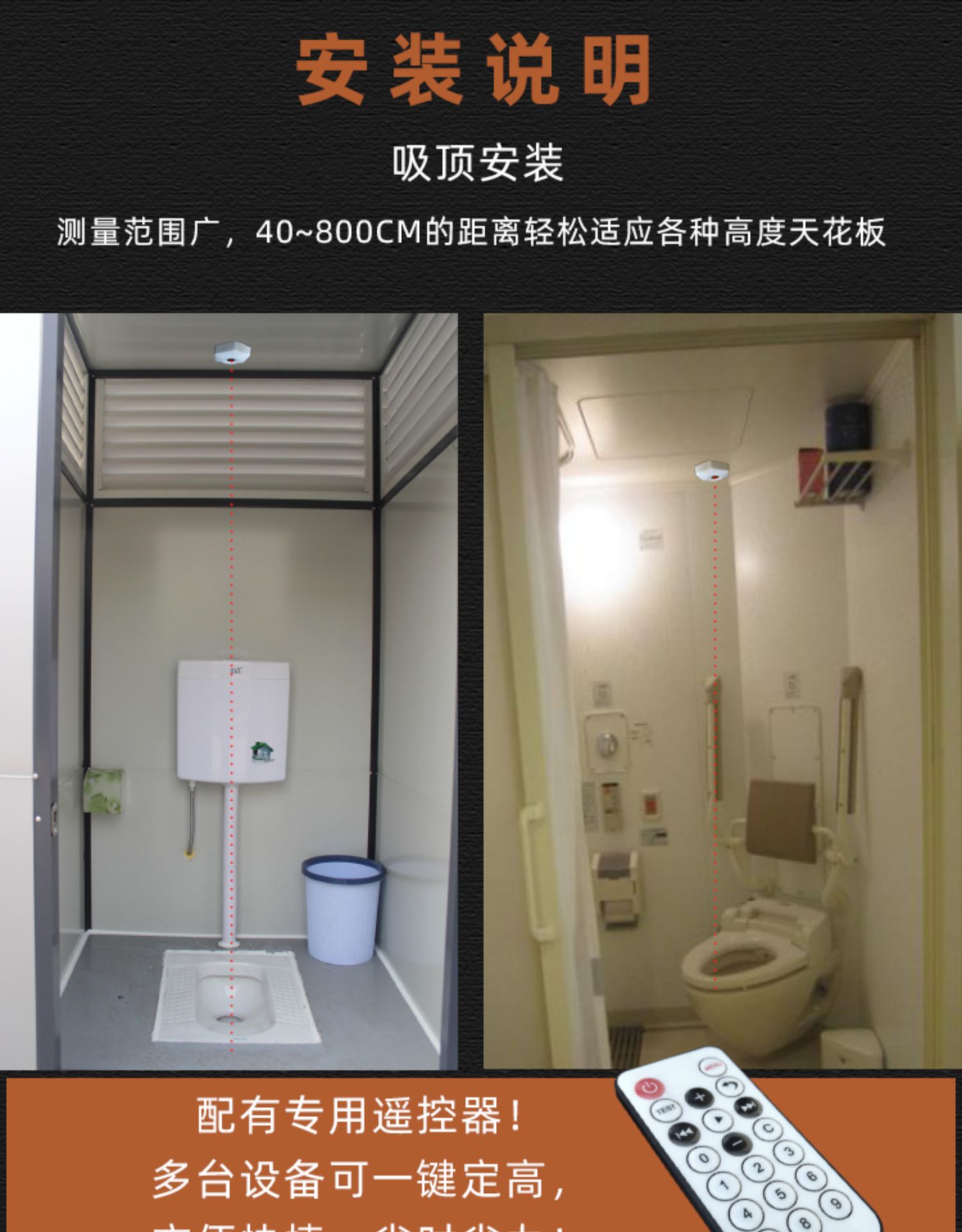 吸顶式公厕所激光蹲坑位传感器智慧公厕有人无人传感器