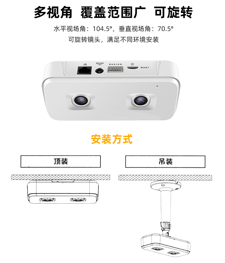 物联网双目3D视频人流量监控统计存进出双向客流量高精全自动实时统计客流数量